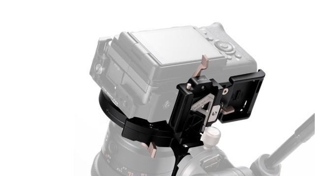 Este accesorio ligero, basado en la tecnología Arca, permite a los usuarios cambiar instantáneamente entre la configuración de disparo horizontal y vertical.
