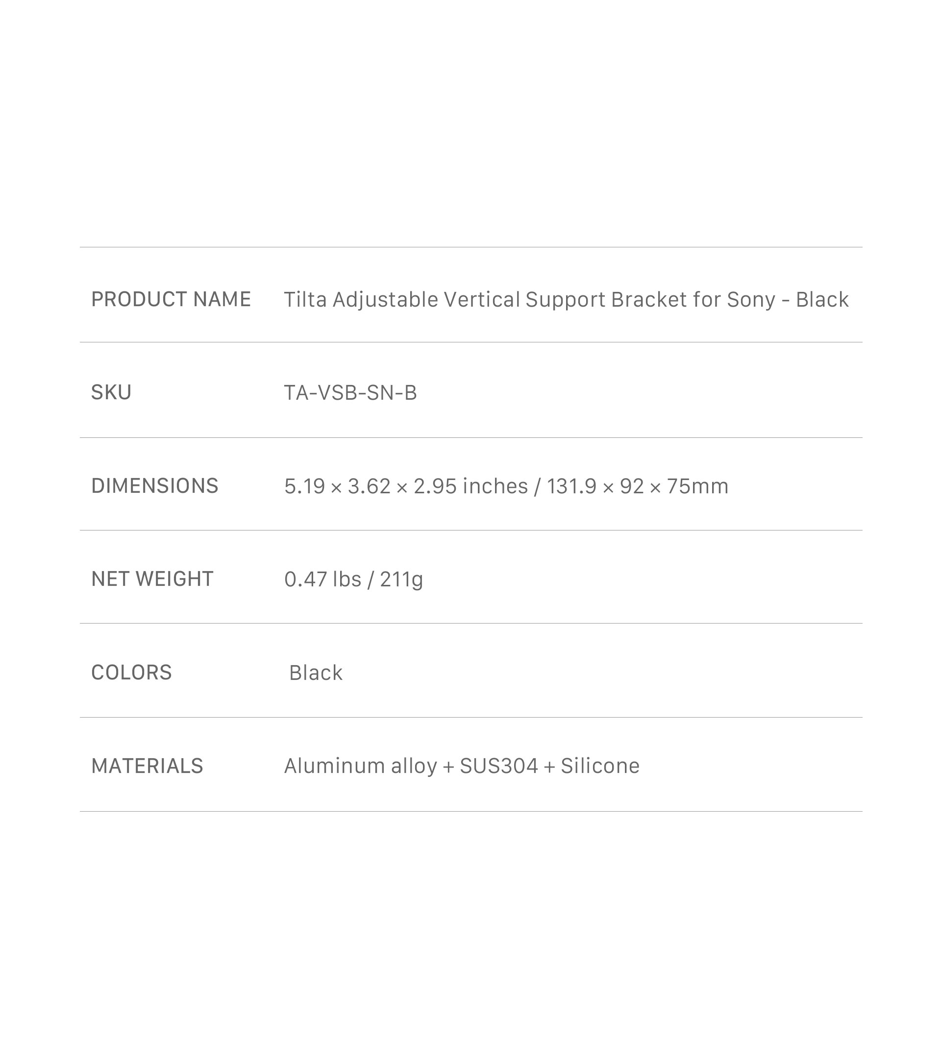 Presentamos el soporte vertical ajustable para cámara Tilta - negro