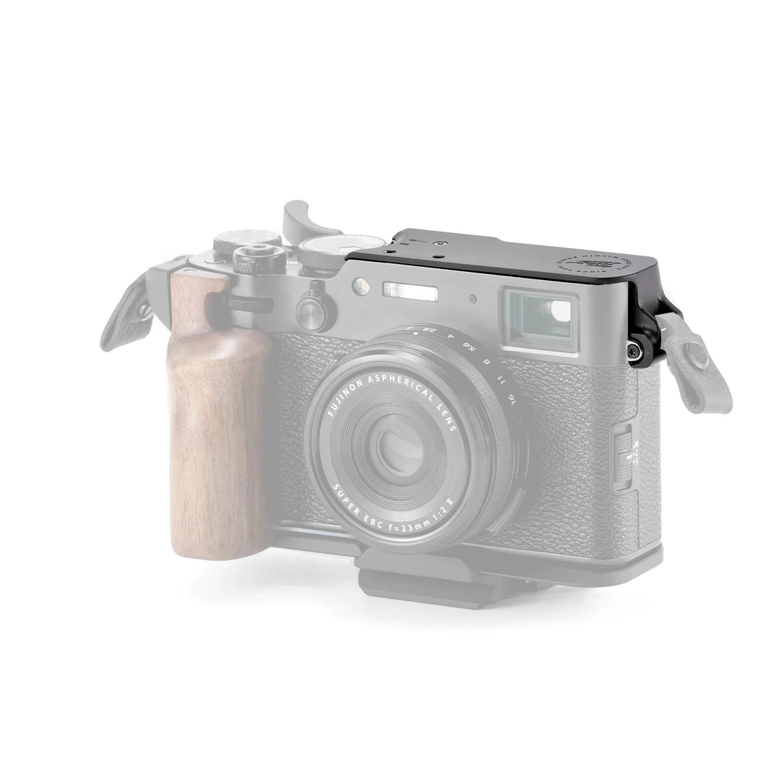 Esta placa protectora se acopla a la parte superior del cuerpo de la cámara Fujifilm X100VI y proporciona a la cámara una protección ligera y resistente.