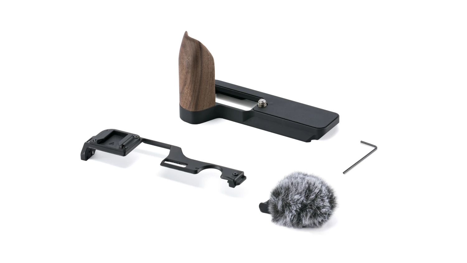 La pieza central de este kit básico vintage para la Canon PowerShot V1 esuna placa base de montaje con un mango de madera de nogal, que ofrece un control y un manejo más cómodos de la cámara, sin dejar de ser compacta y adecuada para viajar.
