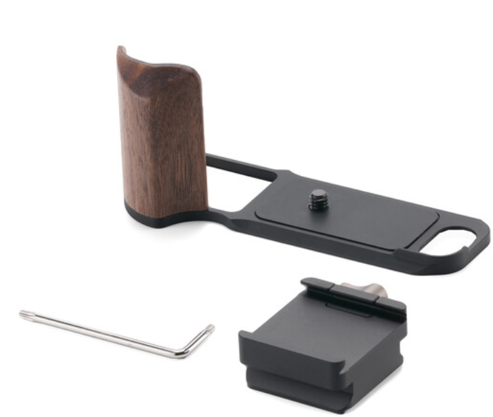 El Tilta TA-T91-A-B Vintage Grip con base (negro) es un soporte ergonómico en forma de L, fabricado con aluminio y madera de nogal, con un acabado exquisito y diseñado en exclusiva para la cámara FUJIFILM X-E5. Combina un estilo retro con funcionalidad moderna gracias a su cómoda empuñadura de madera, su total compatibilidad con Arca-Swiss y el acceso completo a todos los controles de la cámara y al compartimento de la batería.