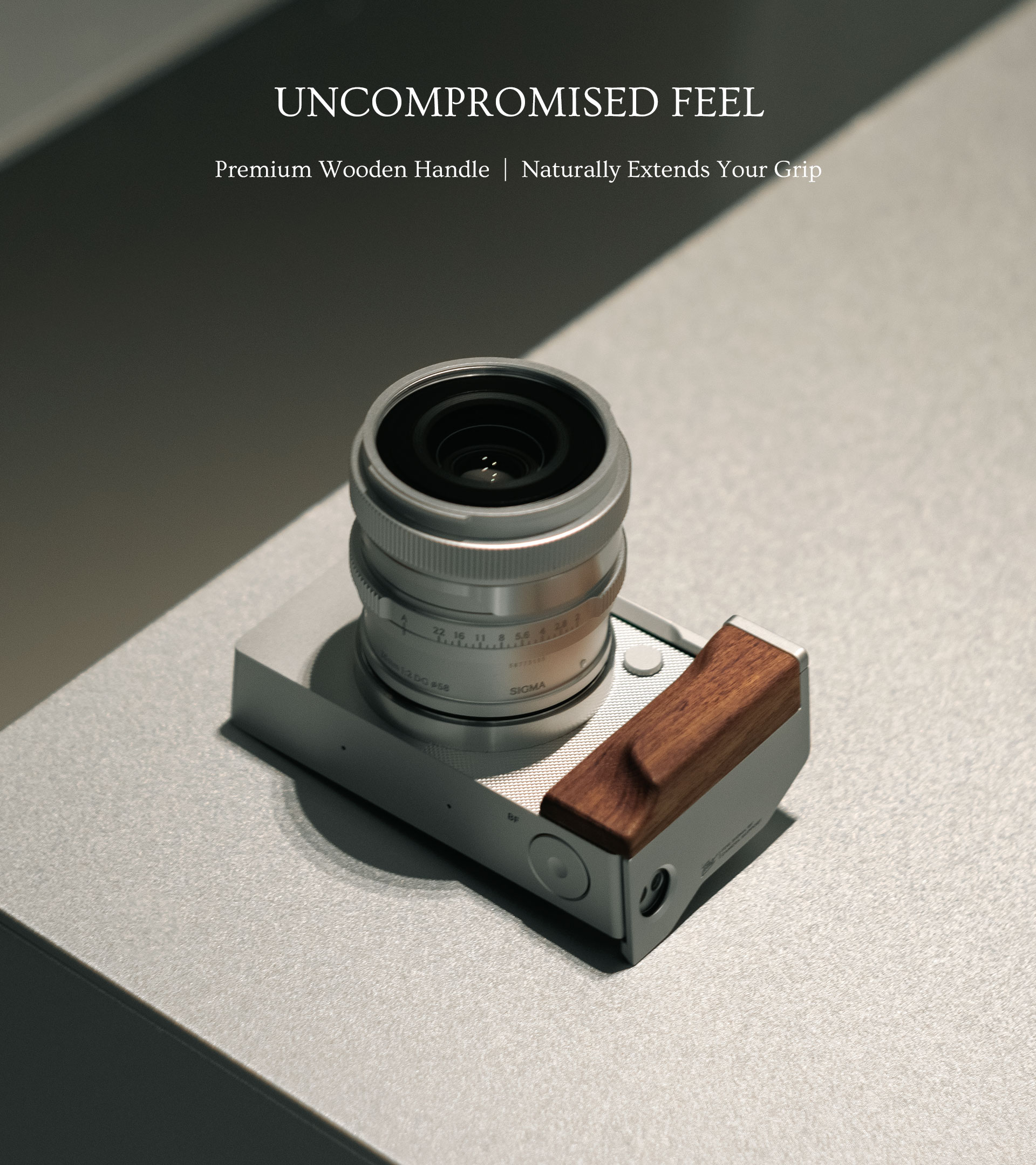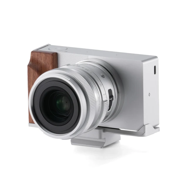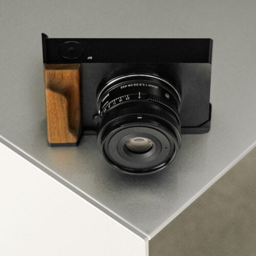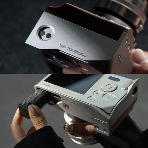 La pieza clave de este kit es un accesorio en forma de soporte en L con un mango de madera de nogal. Esto garantiza un manejo y una manipulación más cómodos de la cámara, sin dejar de ser compacto y adecuado para viajar.