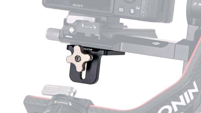 Este soporte se monta debajo de la base del receptor de la placa base del gimbal y, gracias a su diseño de 90 grados, permite conectar a tu equipo diversos transmisores de vídeo inalámbricos de terceros mediante un tornillo de 1/4″-20 que se aprieta con los dedos.