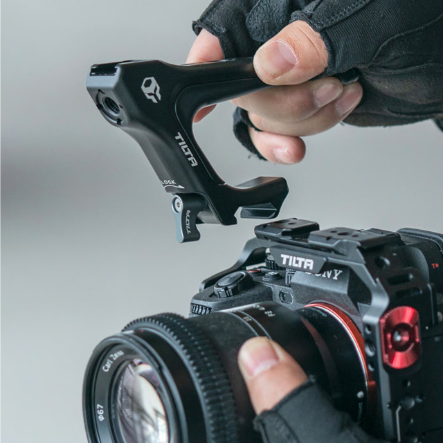 Esta empuñadura superior se fija de forma fácil y segura a la parte superior del chasis completo de la cámara Sony a7 IV.
