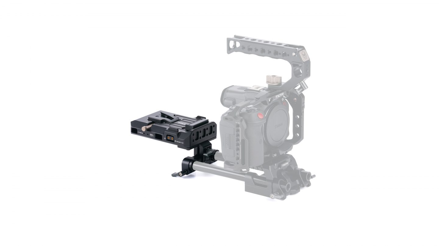Esta placa inteligente para el montaje de baterías V-Mount está equipada con (2) puertos P-Tap de 14,8 V, (1) puerto USB-C de 5 V y (1) puerto USB-C PD de 60 W, lo que permite a la placa de baterías ajustar el voltaje necesario para los accesorios a los que está conectada.