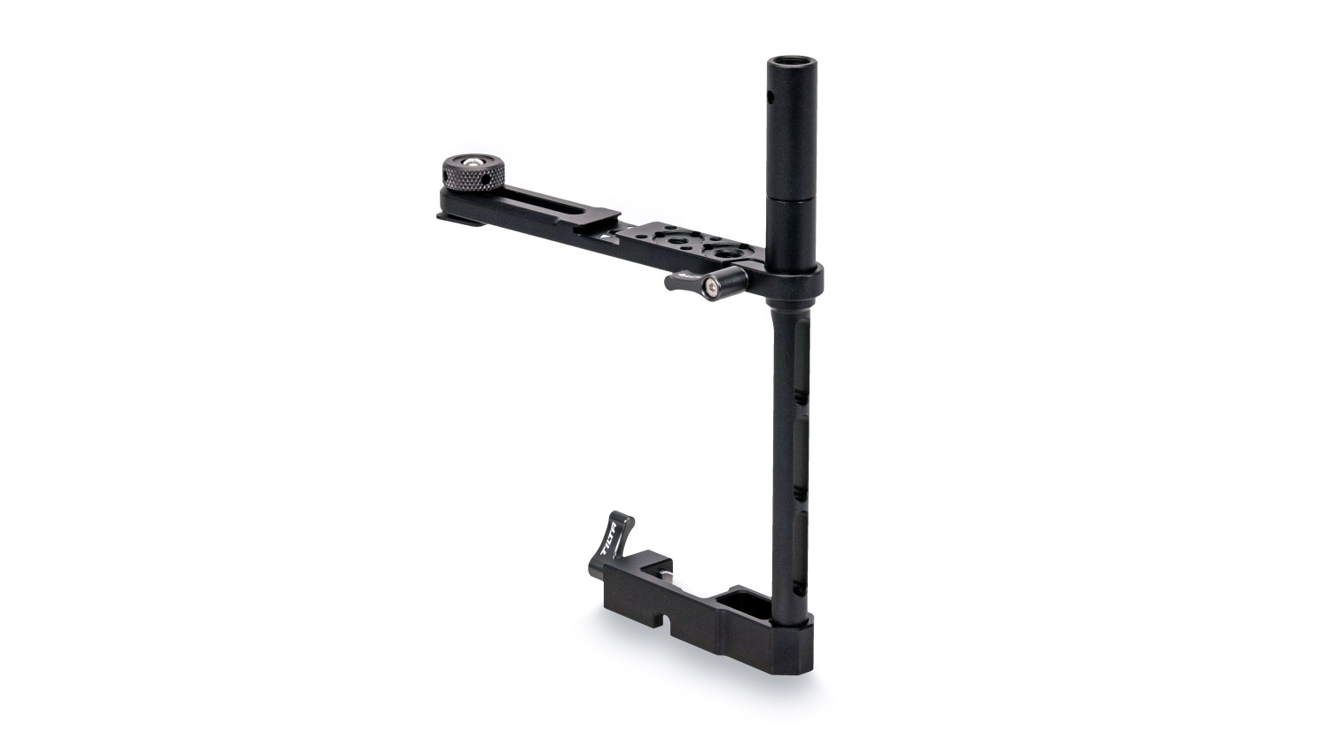 Este soporte superior para la cámara se fija desde la base del brazo de ajuste de altura del DJI RS 2 a la parte superior de la cámara mediante el punto de montaje de la zapata.