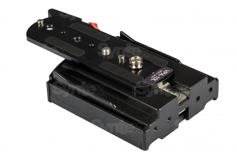 Placa de cámara V-Mount ligera y miniaturizada. Estructura metálica resistente, fabricada en Japón. Ideal para el montaje rápido de cámaras compactas de mano en trípodes equipados con la base V-Mount correspondiente, como por ejemplo el Panasonic SHAN-TM700, el Triad VTA-7, el VTA-14 y otros.