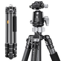 El K&F D254C1+BH-28L es un trípode de viaje compacto de fibra de carbono con estructura