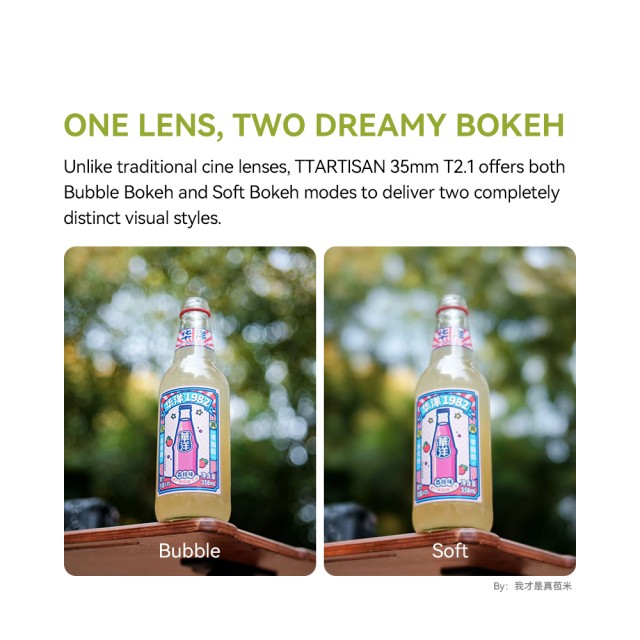 A diferencia de los objetivos cinematográficos tradicionales, el TTARTISAN 35 mm T2.1 ofrece los modos Bubble Bokeh y Soft Bokeh, que proporcionan dos estilos visuales completamente diferentes.