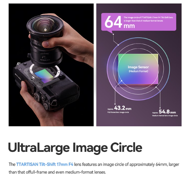 El objetivo cuenta con una construcción resistente y un elegante diseño en negro. Pesa aproximadamente entre 1051 y 1056 gramos y ofrece estabilidad y fiabilidad al fotografiar. El objetivo TTArtisan Tilt Shift 17 mm f/4 L es una excelente opción para los fotógrafos que buscan un control creativo profesional con capacidades de perspectiva ultra gran angular.