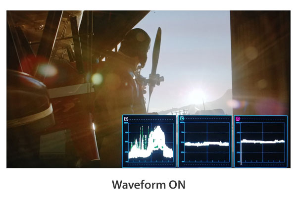Forma de onda Y: muestra los componentes Luma (Y'), Cb y Cr de la señal de entrada en forma de onda.