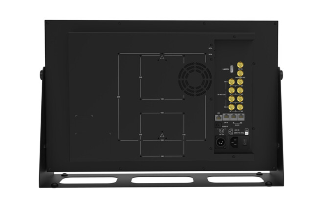 Las conexiones incluyen cuatro entradas 12G-SDI con salidas en bucle, entrada/salida quad-link 3G-SDI, entrada HDMI 2.0, dos ranuras SFP y una entrada de referencia. El monitor admite la conversión de HDMI a SDI y de SFP a SDI, la conversión de entrada 12G quad-link a salida 12G single-link y los modos de visualización quad-view o dual-view para configuraciones de producción con múltiples cámaras.