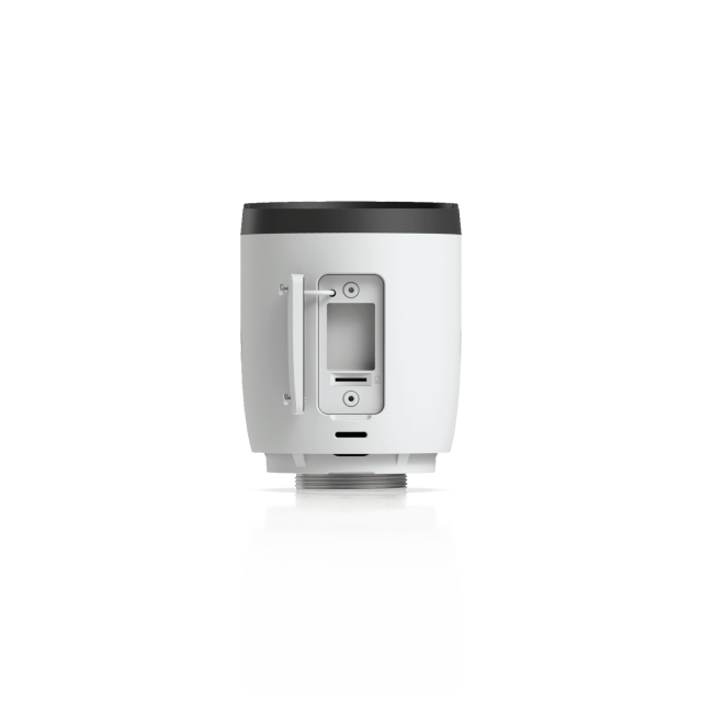 La cámara está diseñada para una larga vida útil y cuenta con un grado de resistencia a la intemperie IP66 y resistencia al vandalismo IK04. Su carcasa combina aleación de aluminio y materiales de policarbonato y está fabricada en color blanco. Las dimensiones sin el soporte son 85,8 x 85,8 x 106,2 mm (0,98 kg) y se puede ampliar para su montaje en pared o poste.