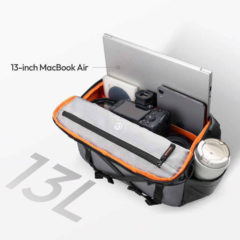Descubre la mochila bandolera Ulanzi SU02 13L Hoshino B163, diseñada para fotógrafos y viajeros que buscan estilo y practicidad. Esta mochila ligera e impermeable, con una capacidad de 13 litros, tiene espacio para un MacBook Air de 13 pulgadas, una cámara, objetivos y accesorios. La correa ergonómica de tres puntos garantiza la comodidad, mientras que los separadores ajustables de material EVA proporcionan protección contra los golpes. Gracias a su diseño antirrobo, al acceso rápido con una sola mano, a las correas para trípode y a sus múltiples compartimentos, la mochila es ideal para viajar, ir al trabajo y para las aventuras urbanas. La bolsa SU02 está fabricada en resistente fibra de poliéster, pesa solo 640 g (sin separadores) y mide 38,5 x 14,5 x 24,5 cm.