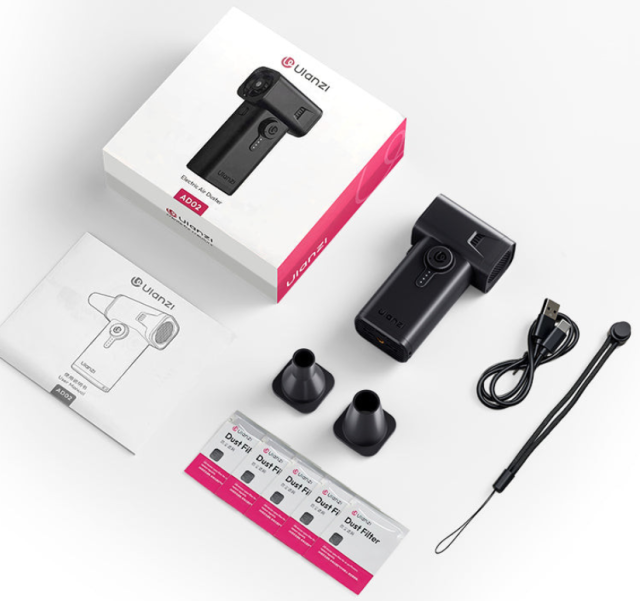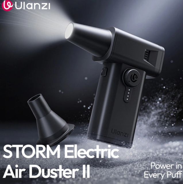 El Ulanzi AD02 X086 STORM Electric Air Duster II es un dispositivo de limpieza versátil diseñado para fotógrafos, aficionados a la tecnología y usuarios domésticos. Este limpiador de aire portátil es lo suficientemente compacto como para caber en la palma de la mano, pesa solo unos 300 g y ocupa menos espacio que un smartphone, por lo que puedes llevarlo a donde lo necesites.