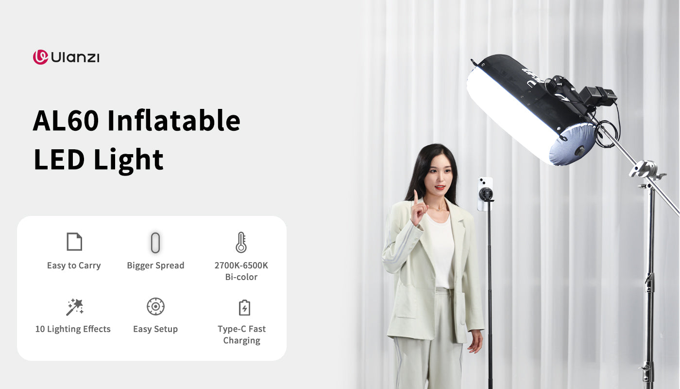 Esta luz está lista para usar en tan solo 20 segundos gracias a su bomba de inflado automática. No es necesario bombear a mano ni soplar: basta con pulsar un botón para montarla de forma rápida y sencilla. Esta luz LED inflable está diseñada para un uso cómodo y se pliega fácilmente, lo que la convierte en la compañera ideal para la fotografía en exteriores. Mejorada para proporcionar una iluminación suave de calidad cinematográfica que realza los retratos y les aporta una belleza natural y un brillo radiante.