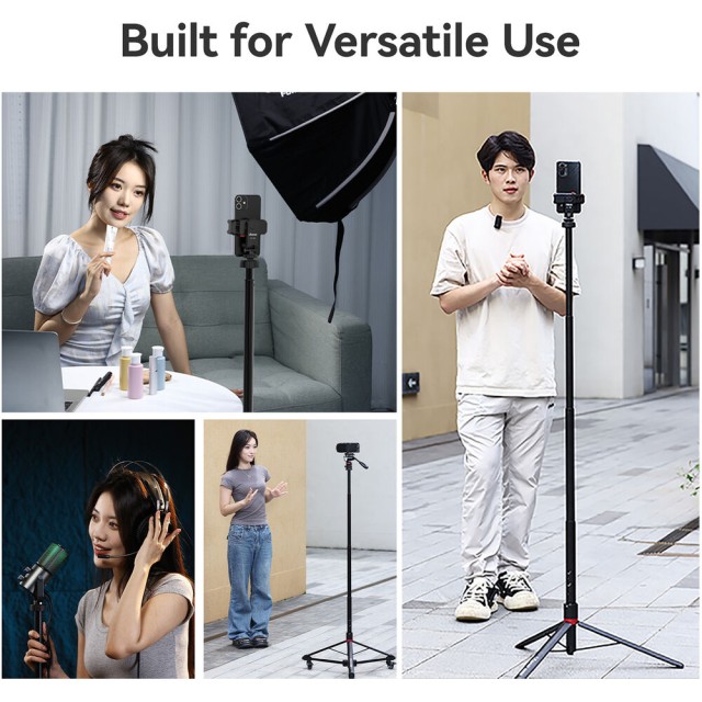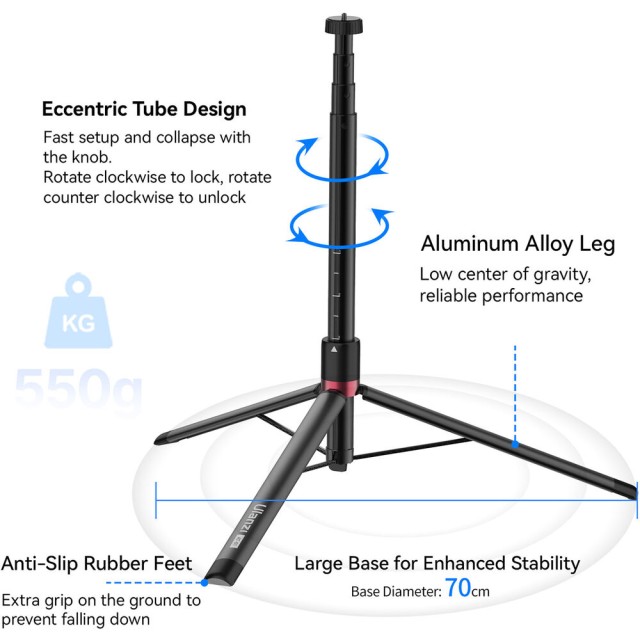 El trípode Ulanzi AT-01 Offset Vlog es un trípode de aluminio compacto y resistente diseñado para vloggers y creadores de contenido. Se despliega rápidamente, es ligero y soporta hasta 5 kg. Su altura se puede ajustar entre 48 cm y 152 cm, lo que garantiza la estabilidad de las cámaras y los accesorios durante los desplazamientos.