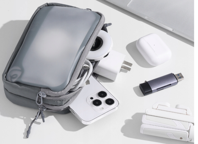 Estuche compacto para accesorios tecnológicos y artículos de uso diario