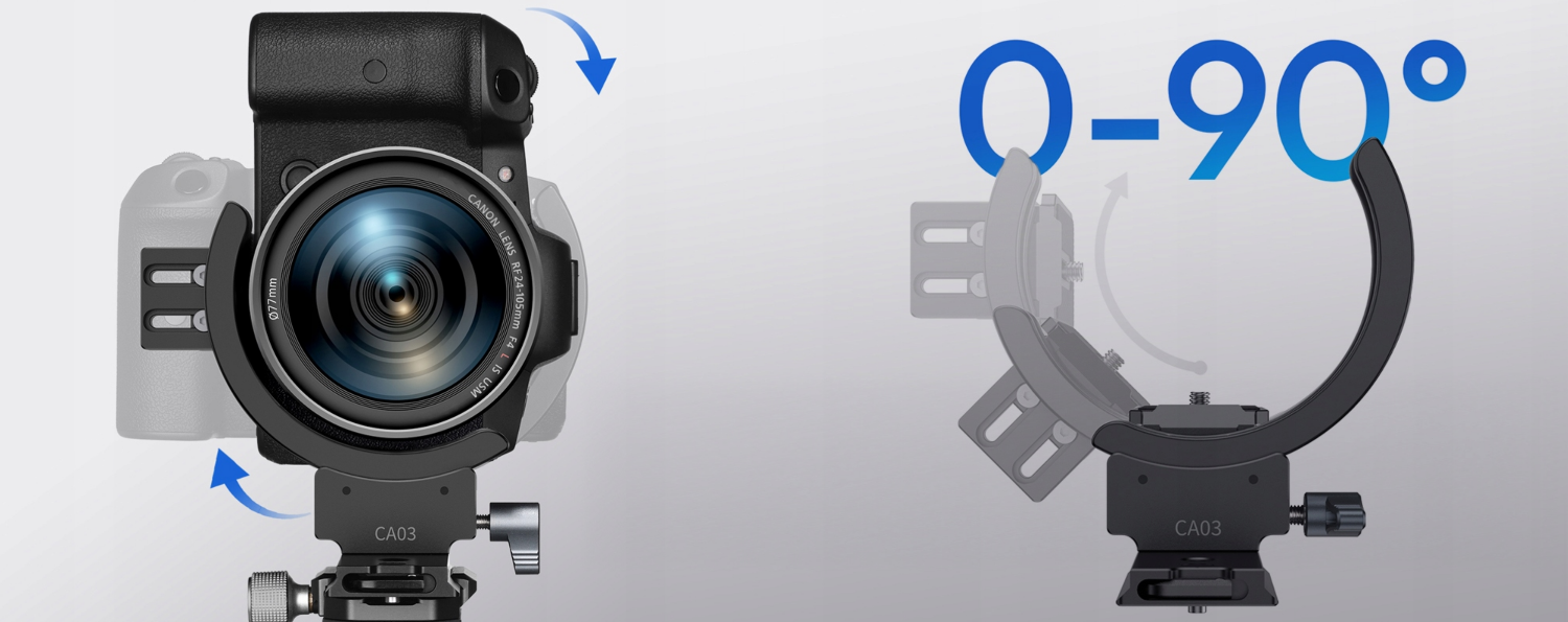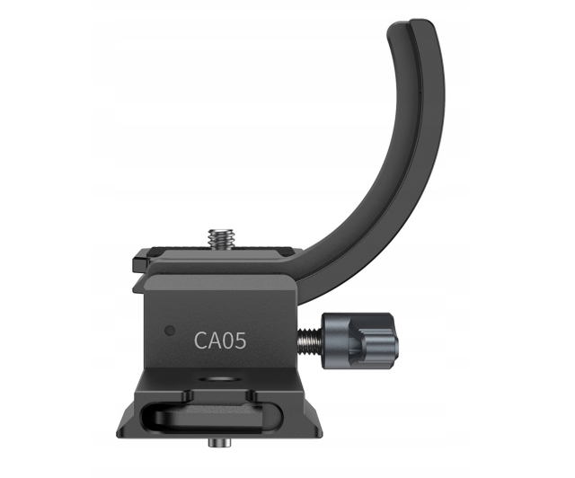 Gracias a la altura ajustable de la plataforma, el CA05 se adapta fácilmente a diferentes diseños de objetivos, mientras que el diseño semicircular del collar permite su instalación sin necesidad de retirar el objetivo de la cámara. Este soporte, fabricado en aluminio y acero resistentes, soporta equipos de hasta 5 kg, pero sigue siendo impresionantemente ligero para configuraciones portátiles.