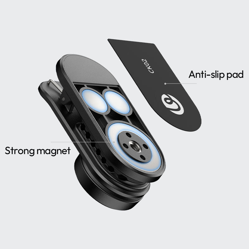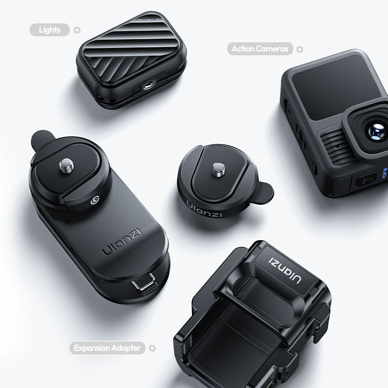 La abrazadera de fijación rápida para mochila Ulanzi CK02 CKa es la solución perfecta para los creadores que viajan con frecuencia. Está diseñada pensando en la rapidez, la seguridad y la versatilidad, y cuenta con un panel trasero magnético, una abrazadera antideslizante y una ranura en forma de U para fijar el equipo con firmeza. Gracias a su sistema de liberación rápida con una sola mano, agiliza tu flujo de trabajo: es ideal para vlogueros, turistas y cineastas móviles. Es compatible con dispositivos con rosca de 1/4", como GoPro, DJI Osmo Pocket 3, Insta360 y luces compactas, soporta hasta 500 g y gira 360° con un tope fijo de 90° para ángulos de filmación dinámicos.