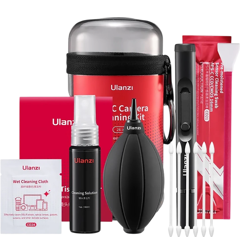 Todos los componentes están organizados de forma clara en un maletín de plástico resistente, lo que hace que este kit sea ideal para viajar, fotografiar en exteriores y trabajar sobre el terreno. El kit Ulanzi CO26, ligero y fácil de transportar, es un accesorio imprescindible para los fotógrafos que desean un cuidado fiable de su cámara, independientemente del lugar en el que fotografíen.