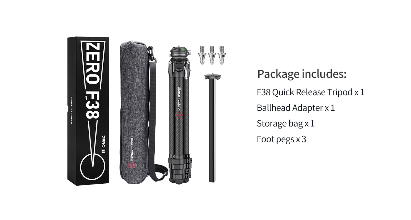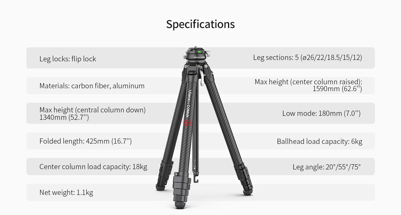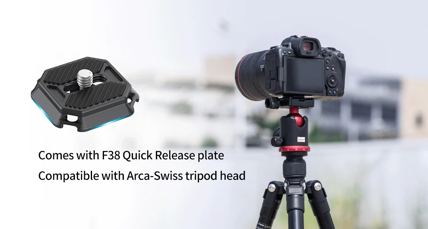 Trípode de viaje de montaje rápido Ulanzi Zero F38: Captura imágenes increíbles durante tus viajes con este trípode de viaje compacto y ligero (1,1 kg) fabricado en fibra de carbono. Gracias a la rótula integrada y a la placa de fijación rápida F38, puedes cambiar fácilmente entre diferentes configuraciones, mientras que la columna central adicional incluida ofrece compatibilidad con Arca-Swiss para una flexibilidad máxima. Fotografía desde diferentes ángulos gracias a las posiciones ajustables de las patas (20°/55°/75°) y al poste corto extraíble para tomas desde ángulos bajos. El trípode Ulanzi Zero F38 está fabricado para durar, soporta hasta 18 kg y todas sus piezas son reparables con garantía de por vida. ¡Da rienda suelta a tu creatividad y captura momentos inolvidables, estés donde estés!