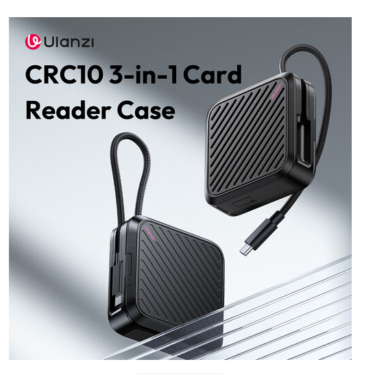 La funda para lector de tarjetas Ulanzi C078GBB1 CRC10 3 en 1 combina una transferencia de datos de alta velocidad y un almacenamiento seguro de soportes multimedia en un diseño compacto. Es compatible con tarjetas CFexpress tipo A, SD y microSD, y cuenta con un cable USB-C 3.2 Gen 2 integrado con una velocidad de 10 Gb/s, varias ranuras de almacenamiento y una carcasa exterior resistente de aleación de aluminio para una disipación eficaz del calor y un rendimiento fiable durante los desplazamientos.