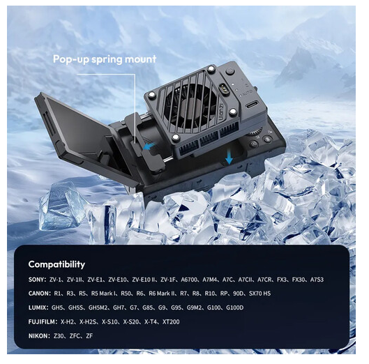 El refrigerador termostático de semiconductores para cámaras Ulanzi CU01 con batería es una solución de refrigeración compacta diseñada para evitar el sobrecalentamiento de las cámaras con pantalla abatible. Gracias a su regulación inteligente de la temperatura, su ventilador de refrigeración de alta velocidad y su batería magnética extraíble con una capacidad de 3000 mAh, garantiza un rendimiento estable durante sesiones de grabación prolongadas.