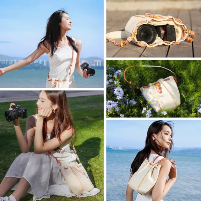 La bolsa DS01 se puede llevar de varias formas: en la mano, al hombro, alrededor del brazo o cruzada, según tus preferencias y la situación. La bolsa DS01 combina fácilmente el estilo con la funcionalidad, lo que la convierte en la compañera ideal para cualquier fotógrafo que viaje.