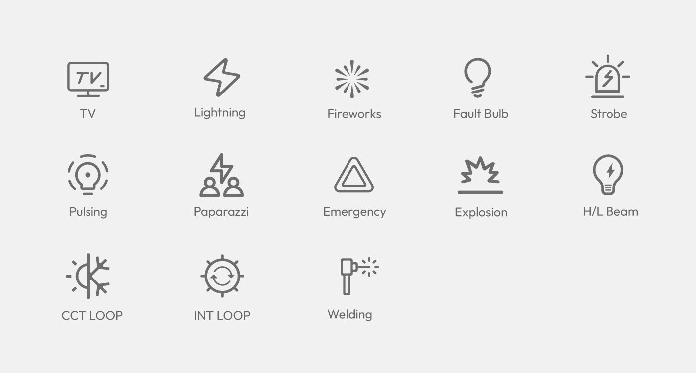 Da rienda suelta a tu creatividad con 13 efectos de luz integrados, como el flash, el estroboscópico y el pulso. Tanto si vas a rodar un drama cinematográfico como una obra de arte, ¡estos efectos te ayudarán a crear la atmósfera perfecta para cada escena!