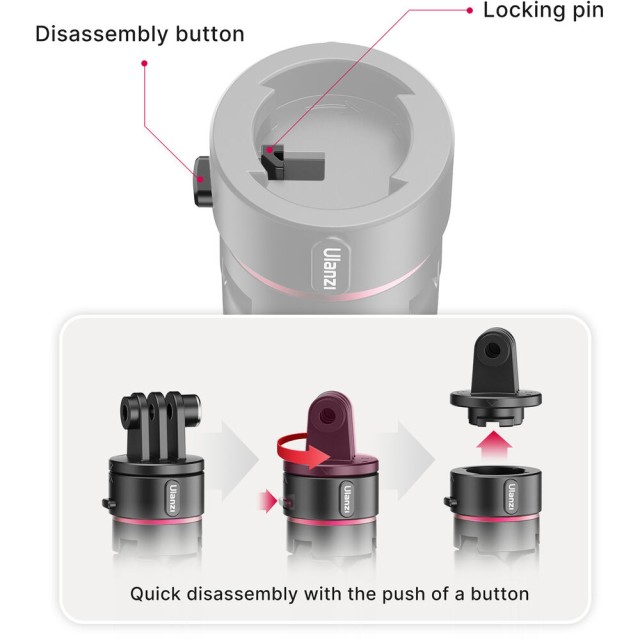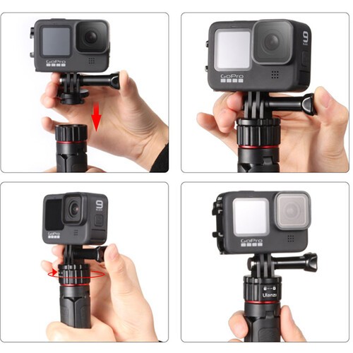 El minitrípode Ulanzi Go-Quick II 2 en 1 es una solución inteligente y ligera para los usuarios de cámaras de acción que necesitan rapidez y flexibilidad. Está diseñado para funcionar a la perfección con cámaras de acción GoPro, DJI e Insta360. Utiliza un sistema de bloqueo magnético de liberación rápida con fijación de dos puntos para una sujeción rápida y segura sin necesidad de manipular tornillos. Las tres patas articuladas del trípode proporcionan un soporte estable sobre una mesa, mientras que la barra extensible de 4 secciones integrada se extiende de 5,7 a 10,4 pulgadas, lo que permite utilizarlo como un palo selfie compacto o como asa de mano. El Go-Quick II está fabricado en plástico ABS resistente y aluminio, y gracias a su peso de tan solo 96 g es fácil de transportar, lo que lo hace ideal para viajar, hacer vlogs, practicar deporte y grabar la acción del día a día.