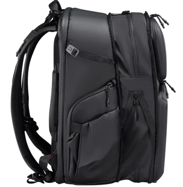 La mochila está fabricada con fibra de poliéster impermeable de primera calidad y cuenta con una protección rígida mejorada que ofrece una excelente resistencia a las inclemencias del tiempo, al tiempo que proporciona funciones antirrobo y contra la pérdida. El panel trasero ergonómico en forma de arco y las correas ajustables para los hombros, la correa pectoral y el cinturón lumbar garantizan la comodidad incluso durante largas sesiones fotográficas o viajes. Para mayor comodidad, la mochila está equipada con cremalleras laterales dobles de acceso rápido que te permiten acceder a tu equipo sin tener que quitarte toda la mochila. La mochila también cuenta con compartimentos separados para objetos secos y húmedos, que mantienen tu equipo delicado y los objetos mojados separados, y un sistema de expansión personalizable con presillas y correas para sacar fácilmente el equipo y ofrecer diversas opciones de transporte. Las múltiples asas dobles te ofrecen flexibilidad para llevar la mochila de diferentes maneras, lo que resulta ideal para diversas situaciones de viaje y fotografía.