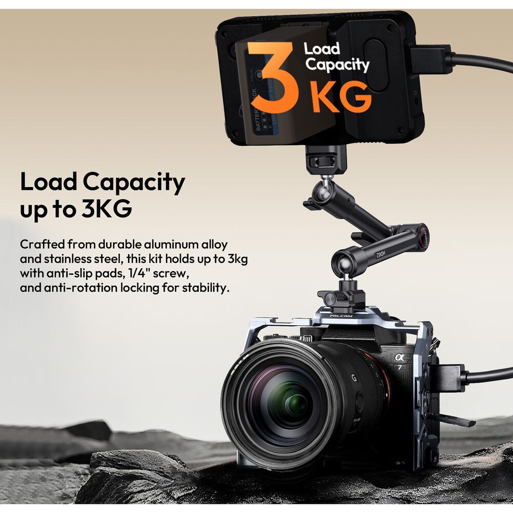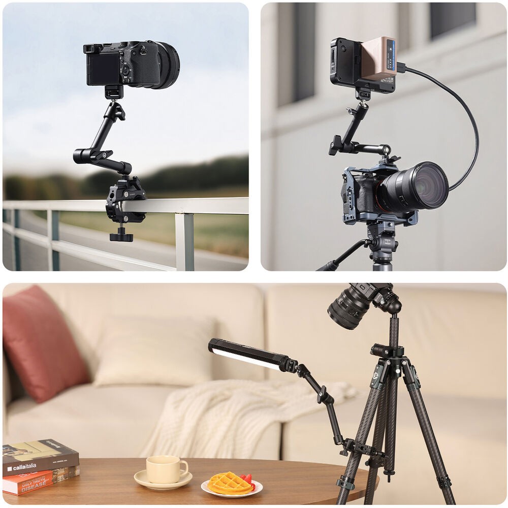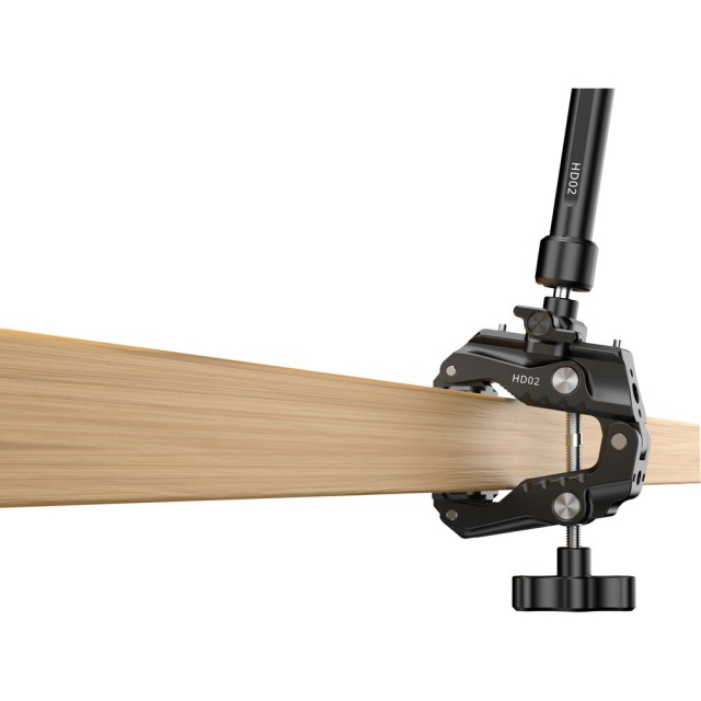 El HD02 Magic Arm conabrazadera tipo cangrejo es un brazo mágico de 10" con una capacidad de carga de 6,6 lb. Monta cámaras, luces u otros accesorios mediante un tornillo de 1/4"-20 con pasadores de posicionamiento ARRI o orificios roscados de 1/4"-20 y 3/8"-16. Fije el brazo a superficies con un grosor de entre 0,86 y 3,4" utilizando la abrazadera incluida con almohadillas antideslizantes. Una vez fijado, el ángulo se puede ajustar fácilmente gracias a la rótula de 360° en cada extremo y a la rotación de 360° entre las dos partes del brazo.