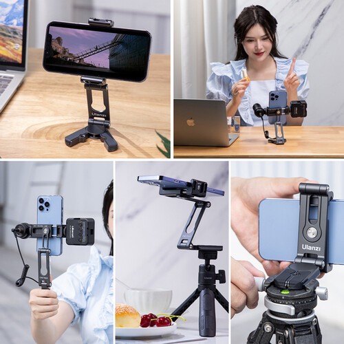 El trípode multifuncional Ulanzi HP004 Crab es un accesorio versátil diseñado para smartphones con un ancho de entre 2,36 y 3,74 pulgadas. Gracias a su diseño plegable y portátil, es ideal para vlogs, retransmisiones en directo, videollamadas y fotografía móvil durante los viajes. La doble función del trípode permite utilizarlo como soporte de mesa estable cuando las patas están extendidas, o como soporte de mano cuando están plegadas.