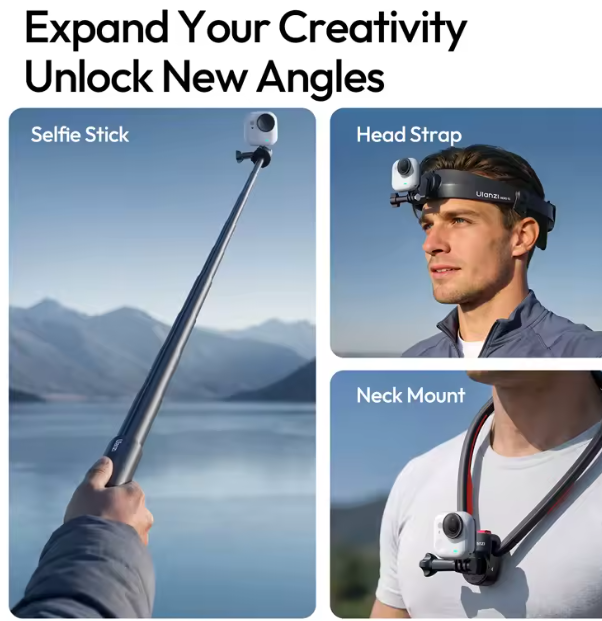 Fabricado en aleación de aluminio y silicona de alta calidad, el IN08 ofrece durabilidad sin dejar de ser ligero y portátil. Su tamaño compacto facilita su transporte e integración en cualquier configuración, ya sea con una correa para la cabeza, un soporte para el cuello o un palo selfie. Con una capacidad de carga segura de hasta 150 g, proporciona un soporte fiable para tu cámara al tiempo que mantiene la estabilidad durante el movimiento.
