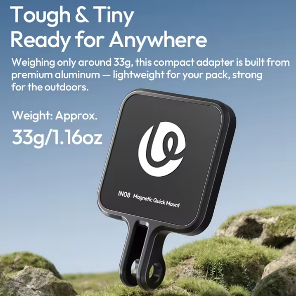 El adaptador magnético Ulanzi IN08 para GO Ultra es un accesorio versátil diseñado para creadores que buscan opciones de montaje flexibles y seguras para su cámara de acción. Diseñado específicamente para la GO Ultra, este adaptador cuenta con un potente sistema de fijación magnética que garantiza una instalación rápida y un rendimiento estable durante actividades dinámicas como el ciclismo, el vlogging, la grabación de mascotas y las aventuras familiares.
