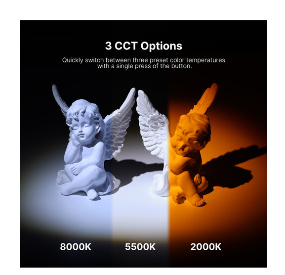 • Temperatura de color ajustable: 2000 K / 5500 K / 8000 K