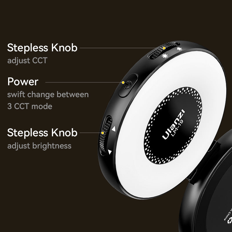 - Diseño giratorio: ajusta tu dispositivo en cualquier ángulo gracias al diseño giratorio flexible y a un rango de giro de más de 180°. La articulación giratoria garantiza que la luz permanezca enfocada hacia ti y proporciona una iluminación perfecta durante transmisiones en directo, vlogs, videollamadas y selfies.