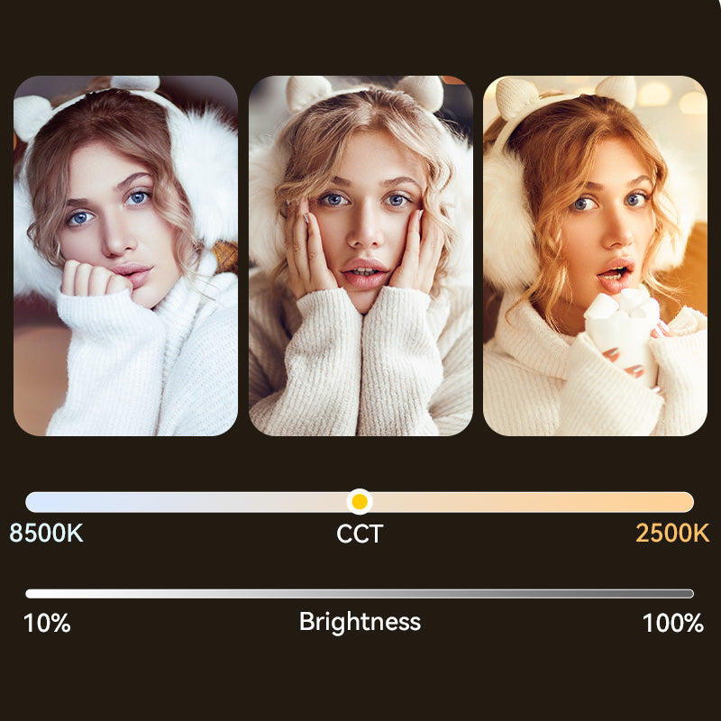 - Temperatura de color ajustable de 2500 K a 8500 K: amplía tus horizontes fotográficos gracias al control universal del color y el brillo. Cambia de forma fluida entre temperaturas de color cálidas, neutras y frías (2500 K-8500 K) y ajusta con precisión el brillo (10-100 %) para conseguir la iluminación perfecta para cada foto.