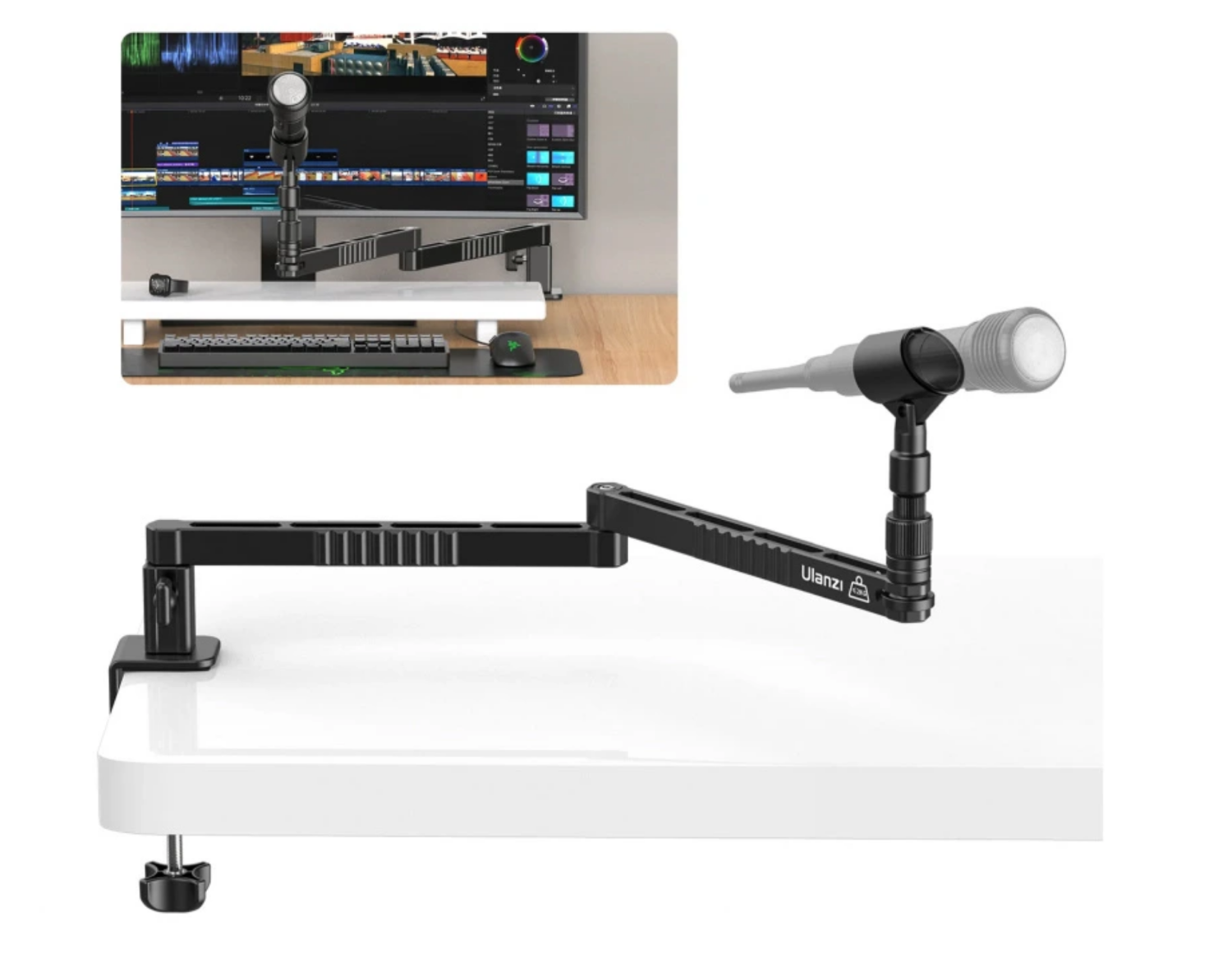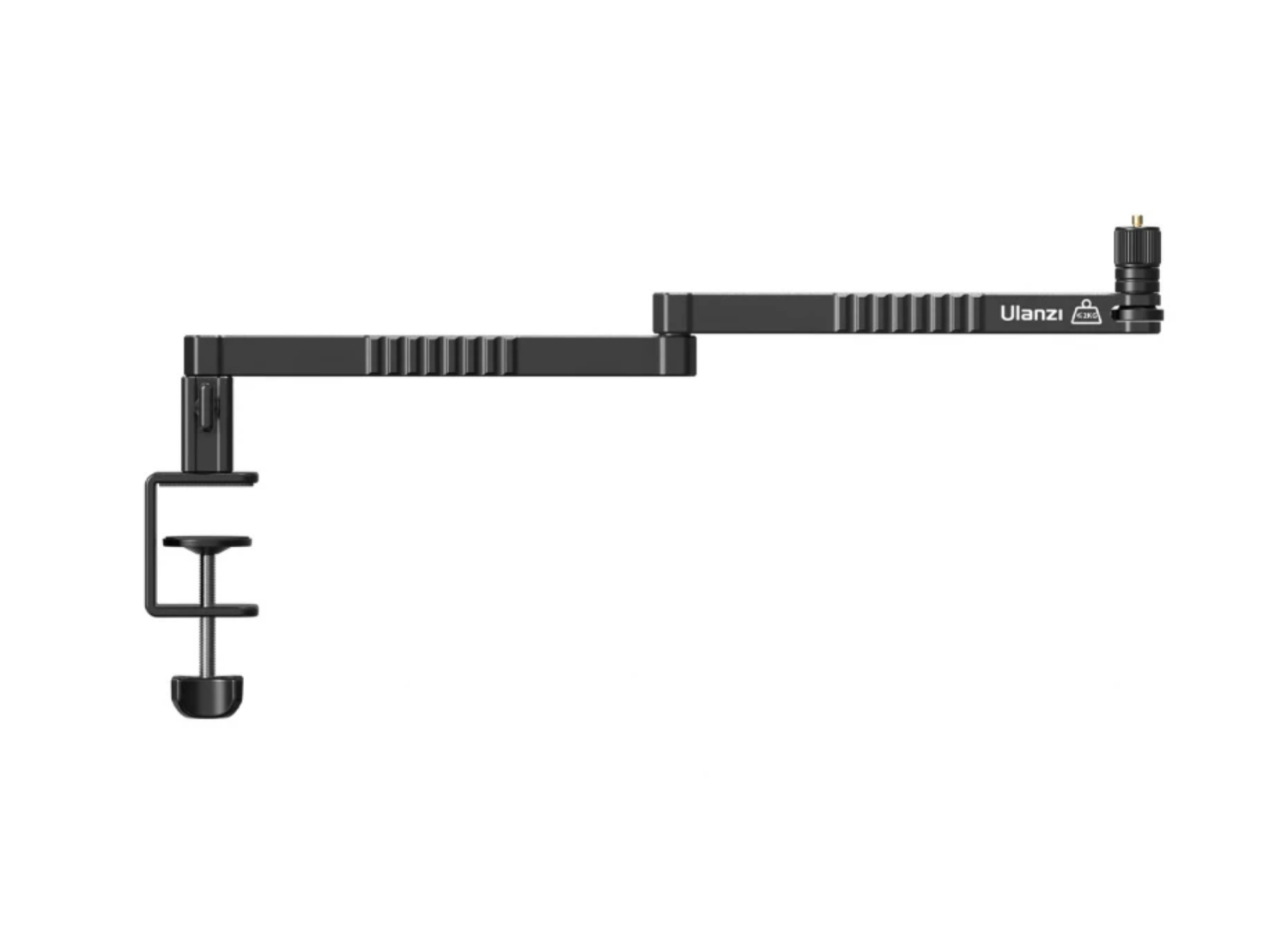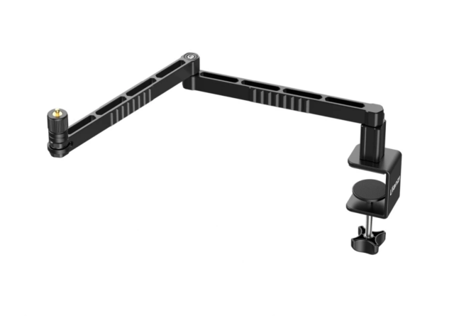 Brazo de aluminio de perfil bajo para micrófonos Ulanzi LS26. Ideal para fijarlo al borde de una mesa o un escritorio.