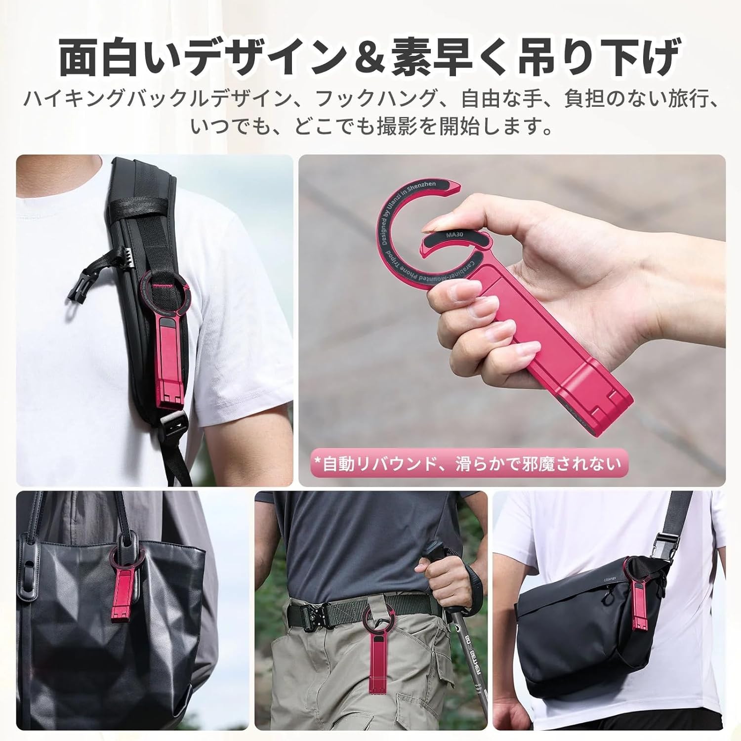 • FIJACIÓN RÁPIDA Y SUJECIÓN FÁCIL: El mosquetón facilita la sujeción y te deja las manos libres, lo que reduce el estrés durante los viajes. Puedes hacer fotos en cualquier momento y en cualquier lugar