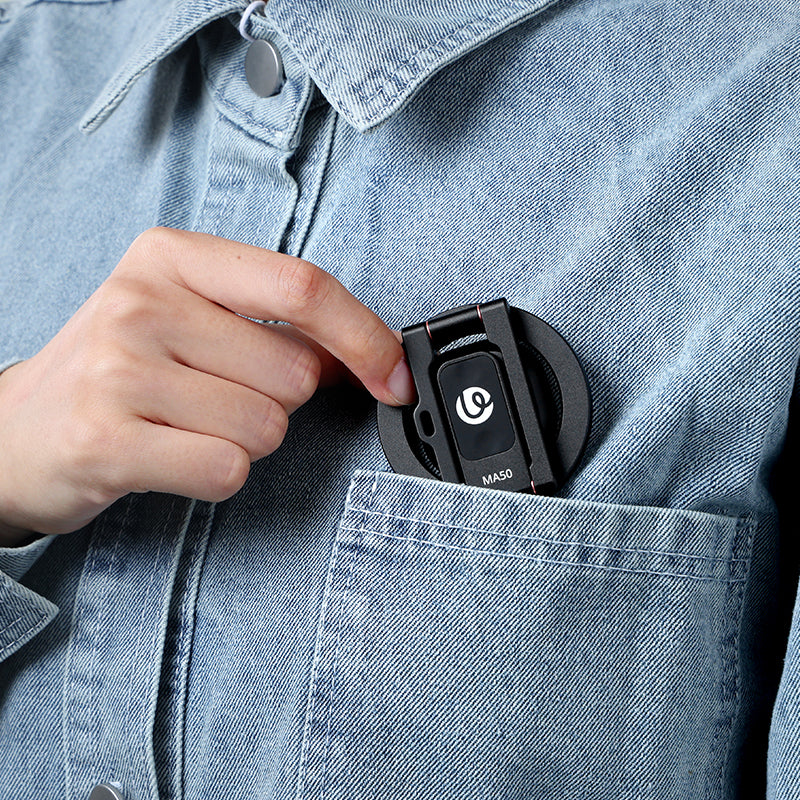 Tan delgado como tu teléfono. Con un grosor de tan solo 12 mm cuando está plegado —aproximadamente el mismo que el de un smartphone—, el MA50 cabe fácilmente en el bolsillo. Opciones de transporte versátiles: Asa para mochila