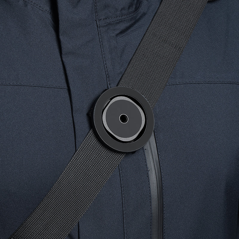 Se adapta a correas de hombro de hasta 30 mm de ancho y 1,5 mm de grosor. Fijación con cordón. Dos tipos de orificios para el cordón permiten fijar correas de diferentes tamaños