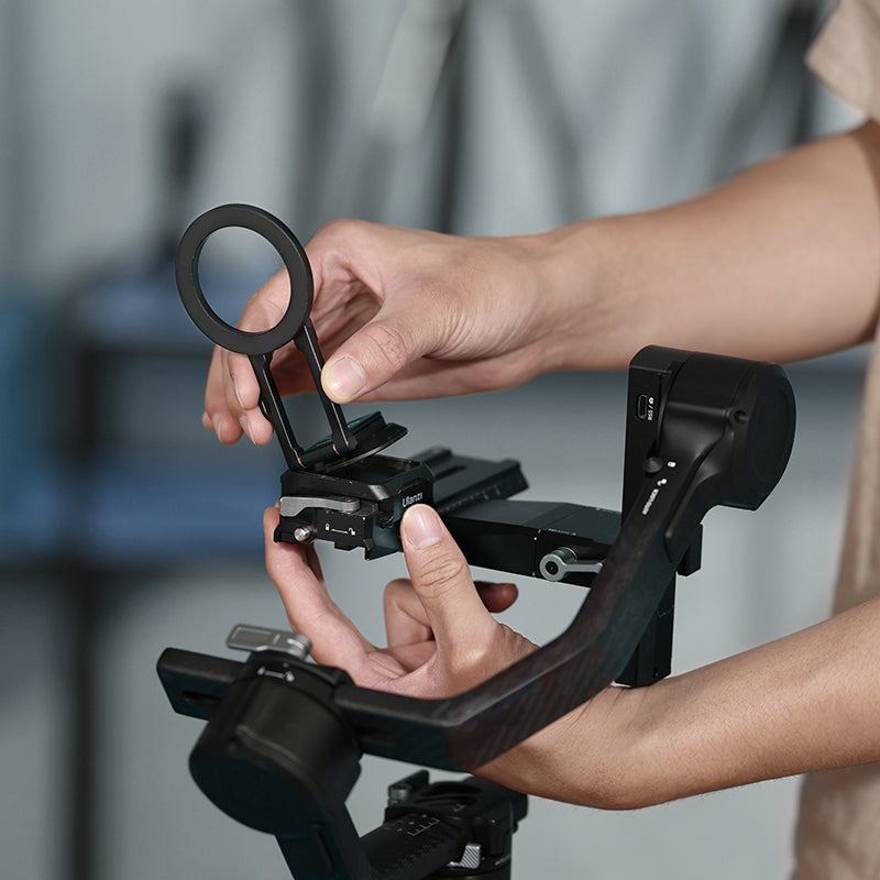 El puerto roscado de 1/4" integrado en la parte inferior es compatible con accesorios como brazos mágicos, trípodes o palos selfies.