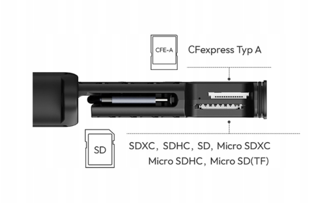Compatible con tarjetas CFexpress tipo A, SD, microSD (TF) y SIM
