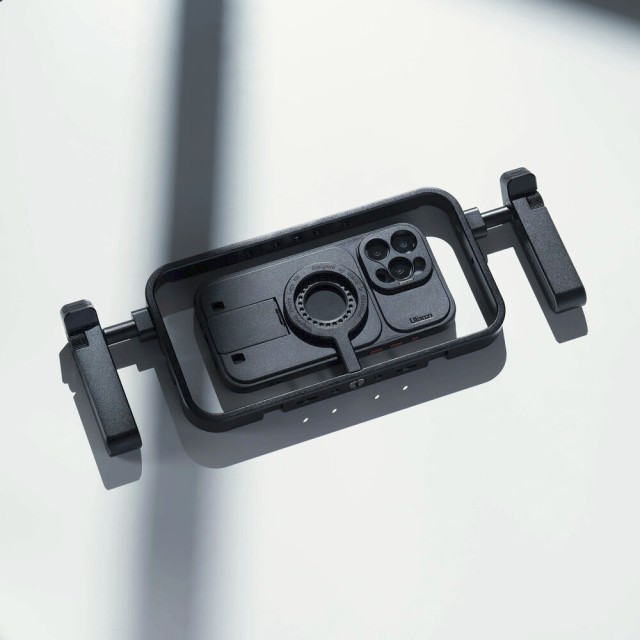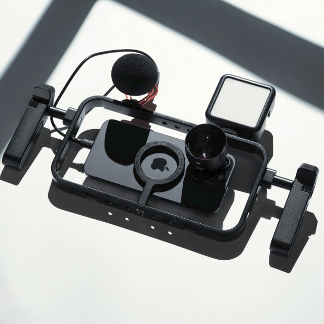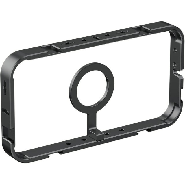 Mejora tus grabaciones de vídeo con el soporte magnético para smartphone Ulanzi MG-001, diseñado para smartphones y fundas compatibles con MagSafe. El soporte está fabricado en una resistente aleación de aluminio y silicona, es ligero pero resistente y ofrece un equipo profesional para retransmisiones en directo, vlogs o grabaciones de vídeo in situ. La jaula está equipada con un soporte magnético que sujeta tu teléfono mediante un tornillo de 1/4"-20 para un ajuste rápido, mientras que las asas laterales dobles garantizan un manejo cómodo y estable. Estas asas son desmontables y se pueden colocar en cualquiera de los ocho orificios de fijación, lo que permite cambiar fácilmente entre la orientación horizontal y vertical. Gracias a los cinco orificios roscados de 1/4"-20 y a los seis soportes para accesorios, puedes conectar micrófonos, luces LED u otros accesorios y mejorar así tu equipo creativo. El sistema magnético N52 del modelo MG-001 garantiza una sujeción segura del teléfono, lo que te da confianza durante las grabaciones dinámicas.