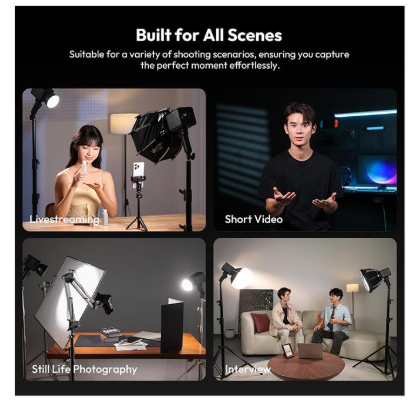 La luz de vídeo LED portátil Ulanzi L231 ML100Bi ofrece una impresionante potencia de 100 W en un diseño ligero ideal para viajar. Gracias a la avanzada tecnología LED COB, produce una iluminación suave y uniforme, ideal para la producción de vídeo, entrevistas, retratos, fotografía de productos y la creación de contenido en entornos con poca luz.