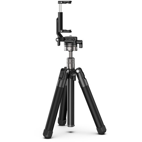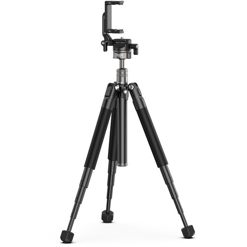 La rótula integrada garantiza un movimiento fluido con giro panorámico de 360°, control de resistencia y bloqueo de giro independiente, lo que permite un encuadre preciso tanto en orientación horizontal como vertical. El adaptador para smartphone integrado y el tornillo de montaje estándar de 1/4"-20 garantizan una amplia compatibilidad con los dispositivos. La columna central extraíble y giratoria también sirve como palo selfie, lo que amplía el alcance para vlogs manuales o ángulos creativos. Otras funciones, como el nivel de burbuja, las múltiples posiciones de ángulo de las patas y las almohadillas antideslizantes, aumentan la estabilidad y facilitan su uso en diversos entornos fotográficos.