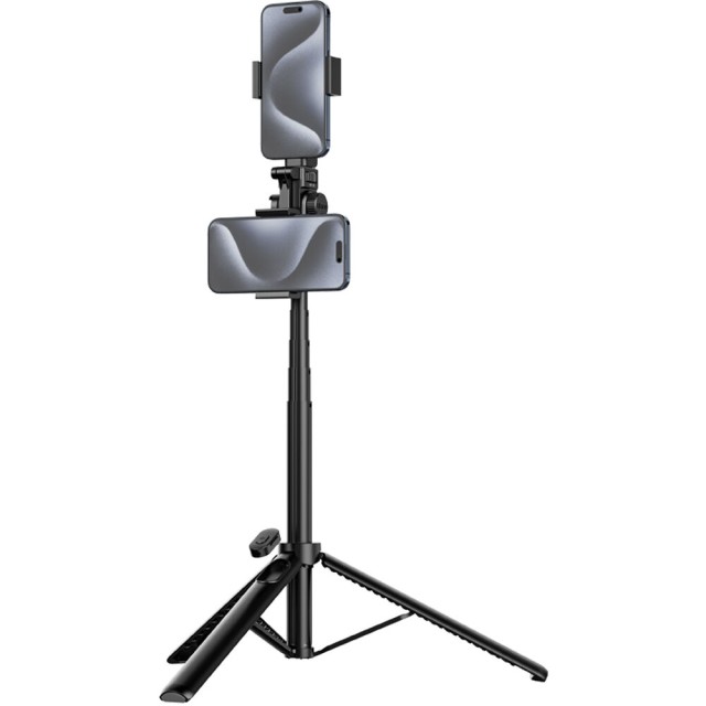 El trípode Ulanzi MT-70 360° Rotate Dual Camera Tripod es un accesorio multifuncional para smartphones y cámaras pequeñas, diseñado para creadores de contenido, vloggers y streamers en directo. Su barra de aluminio de 7 secciones se puede extender de 32 cm a 158 cm, por lo que puede servir como palo selfie, asa o trípode independiente.