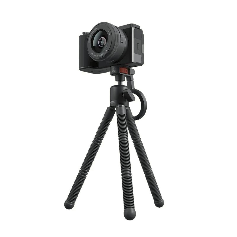 El Ulanzi MT30 es un trípode universal, magnético y flexible diseñado para smartphones, cámaras y cámaras de acción. Su diseño plegable tipo mosquetón lo hace ideal para viajar, mientras que sus patas flexibles y la rosca de fijación de 1/4" permiten ángulos creativos y grabaciones estables.
